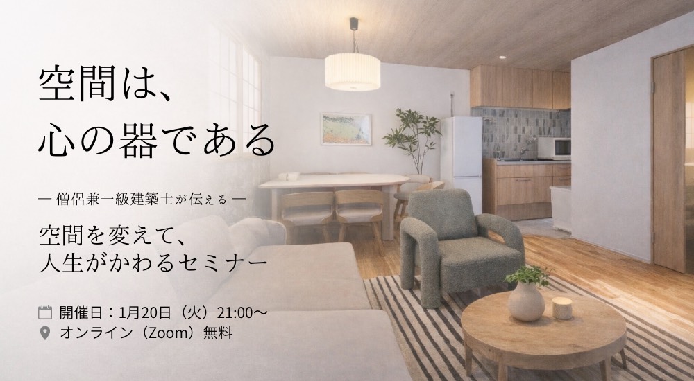 気持ちの問題、性格の問題だと思っていたことが、実は“毎日過ごしている空間”から来ていたという視点を、僧侶×建築士の言葉でやさしく理解できます。